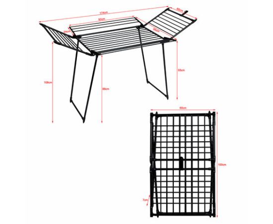 Размер – 60х92х88 см в сложенном виде и 95х174х108 см с разложенными с четырех сторон створками. Выдерживает нагрузку до 48 кг. Устойчивая, вместительная и компактная в хранении, при необходимости быстро и легко складывается и убирается. Заменяет до 25 метров бельевой веревки!