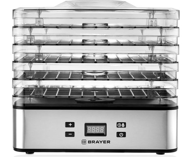 Сушилка для овощей и фруктов BRAYER BR1900 предназначена для сушки фруктов, овощей, лекарственных или пряных трав, рыбы и т.п. Не подходит для сушки жирных продуктов (например, говядины, свинины и т.д.).