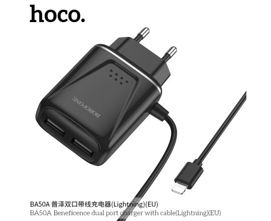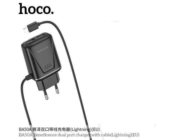 СЗУ 2USB 2.1A для Lightning 8-pin со встроенным кабелем Borofone BA50A 1м (Black)