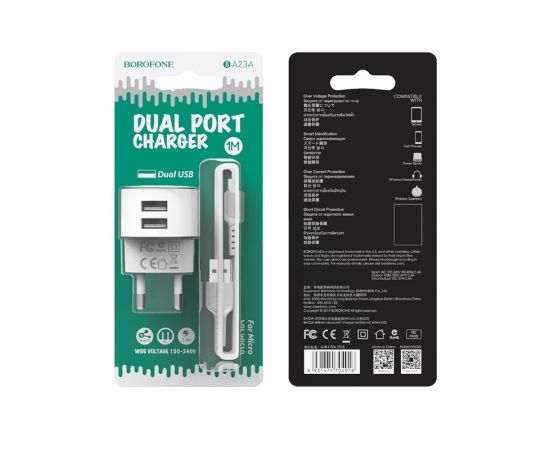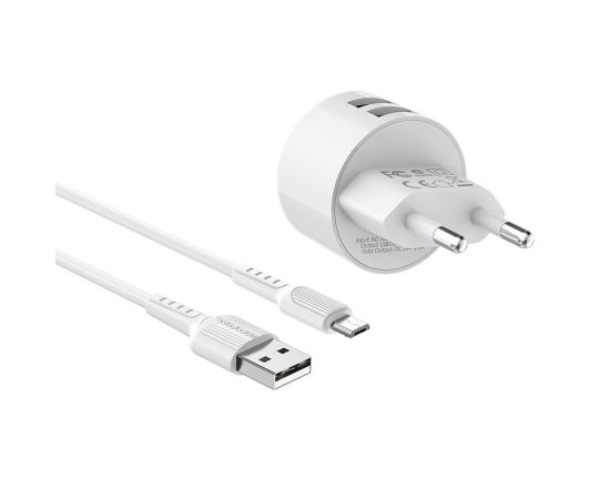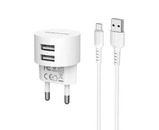 СЗУ 2USB 2.4A для micro USB с IC Borofone BA23A 1м (White)