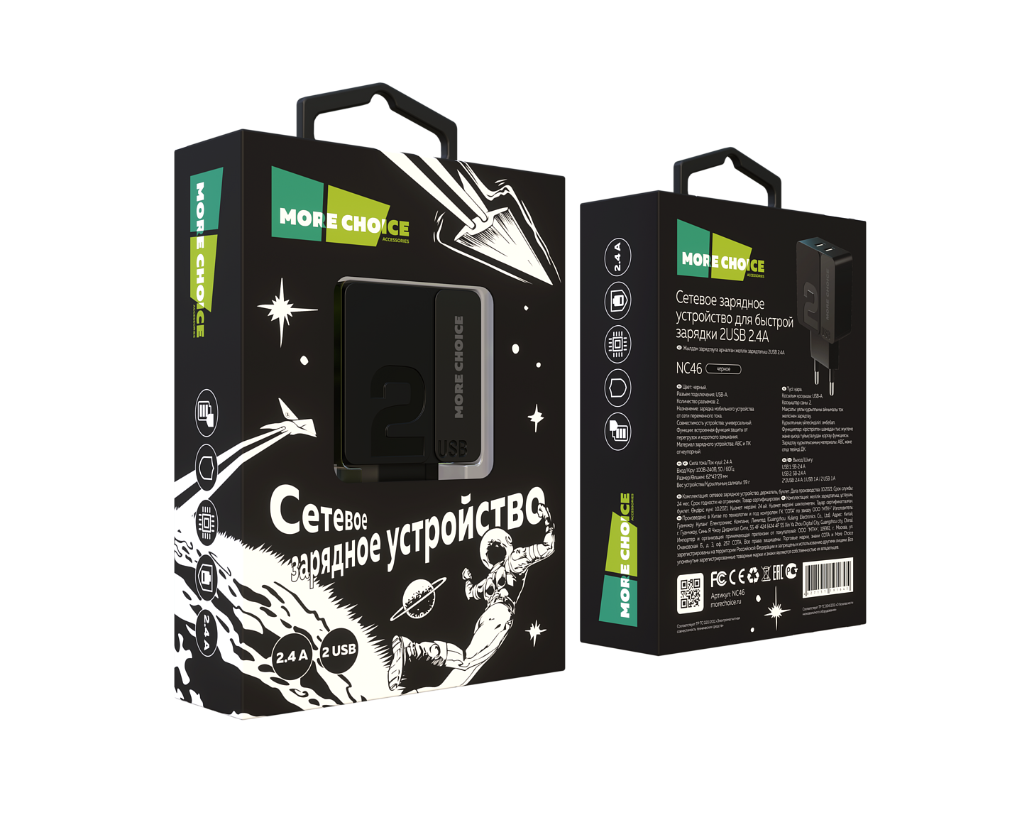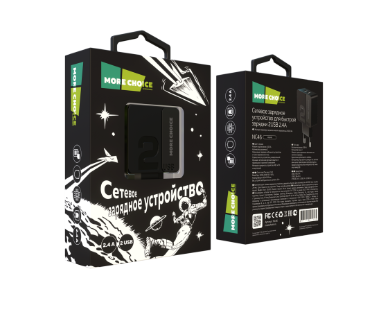 СЗУ 2USB 2.4A More choice NC46 (Black Black)