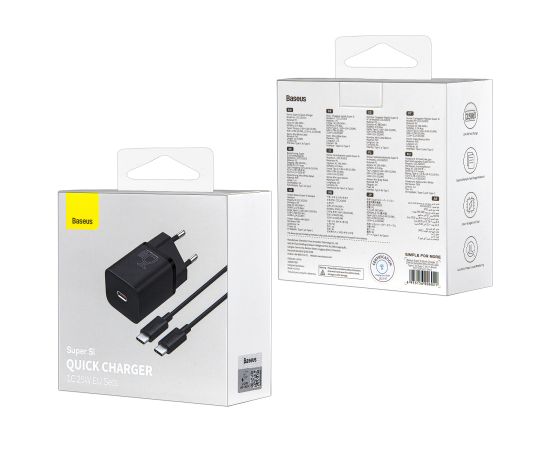 СЗУ 2в1 Baseus TZCCSUP-L01, Type-C/Type-C, 3.0A, 1 Type-C, 25 W, 1.0 м, черный