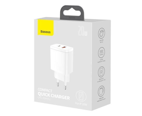 СЗУ Baseus Compact Quick Charger USB-C+USB-A 20W EU White