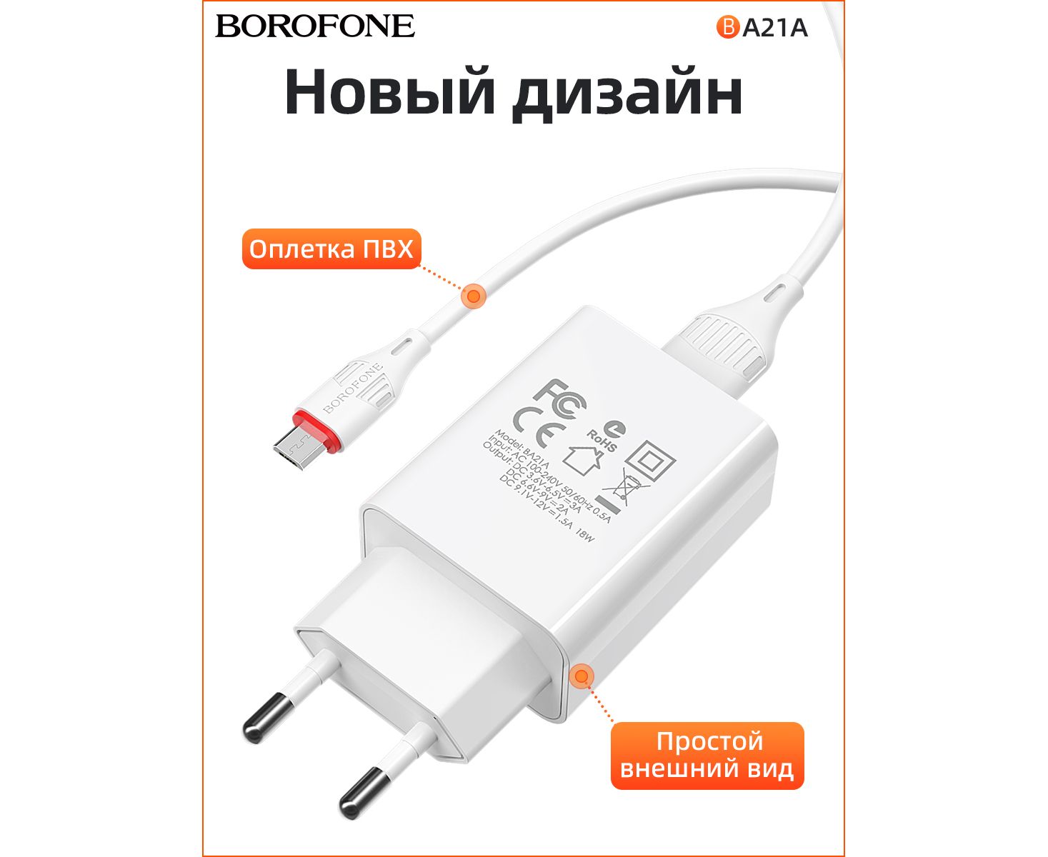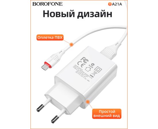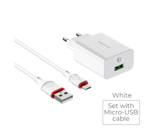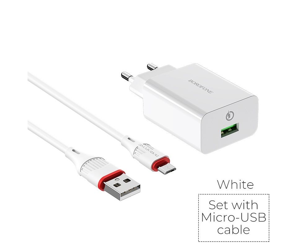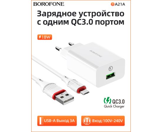 СЗУ BOROFONE BA21A Long journey 1USB, 5V, 3A QC3.0 Micro (белый)