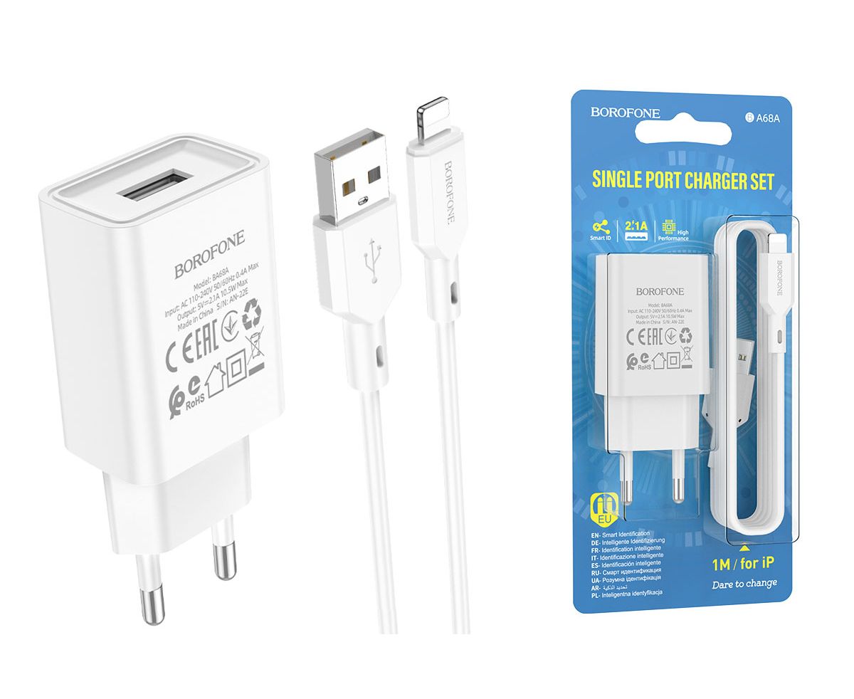 СЗУ BOROFONE BA68A Glacier 1USB + Lightning (белый)