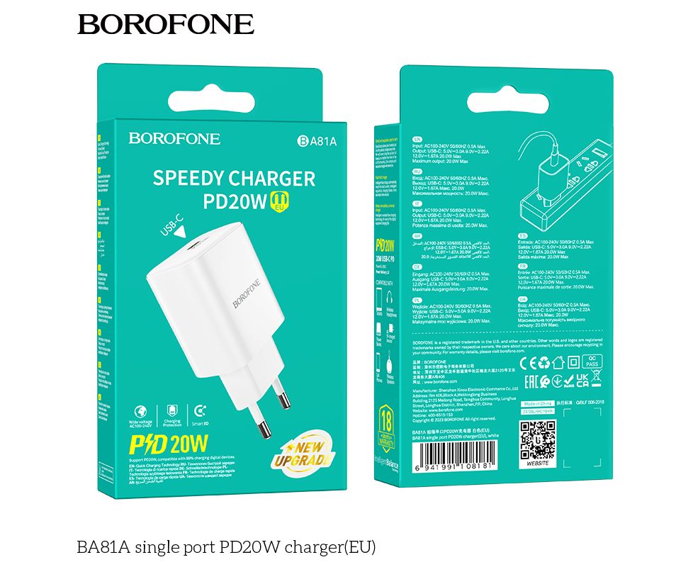 СЗУ BOROFONE BA81A single port PD20W charger(EU) (белый)