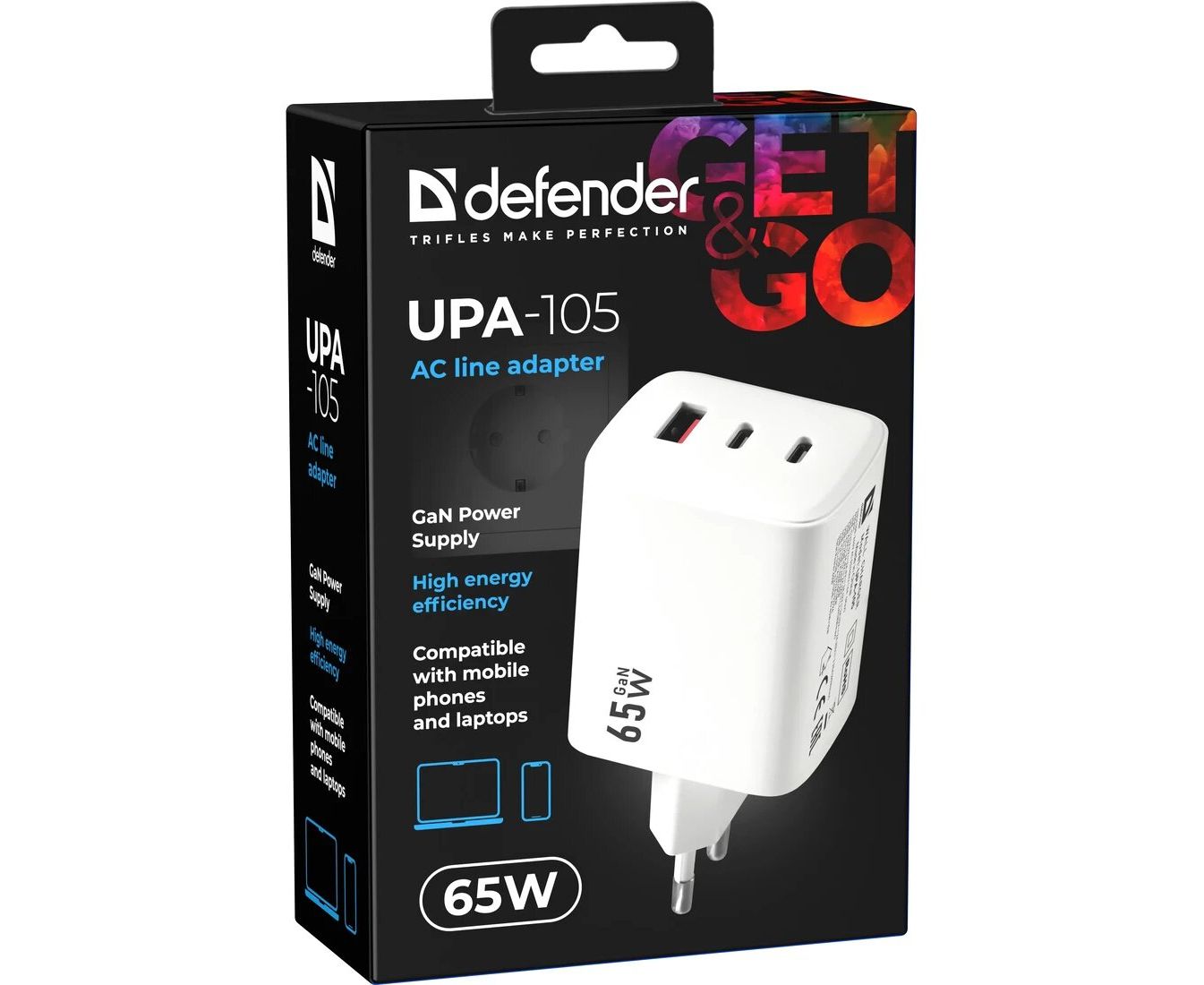 СЗУ DEFENDER UPA-105 65W, USB A+C+С, белый (83265)