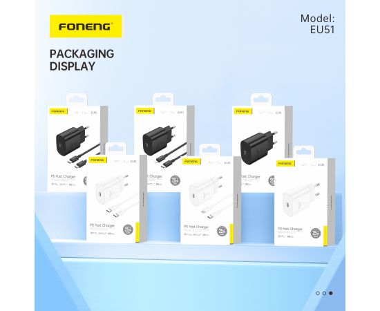СЗУ Foneng EU51 GaN USB-C 25W + кабель Type-C to Type-C (Black)