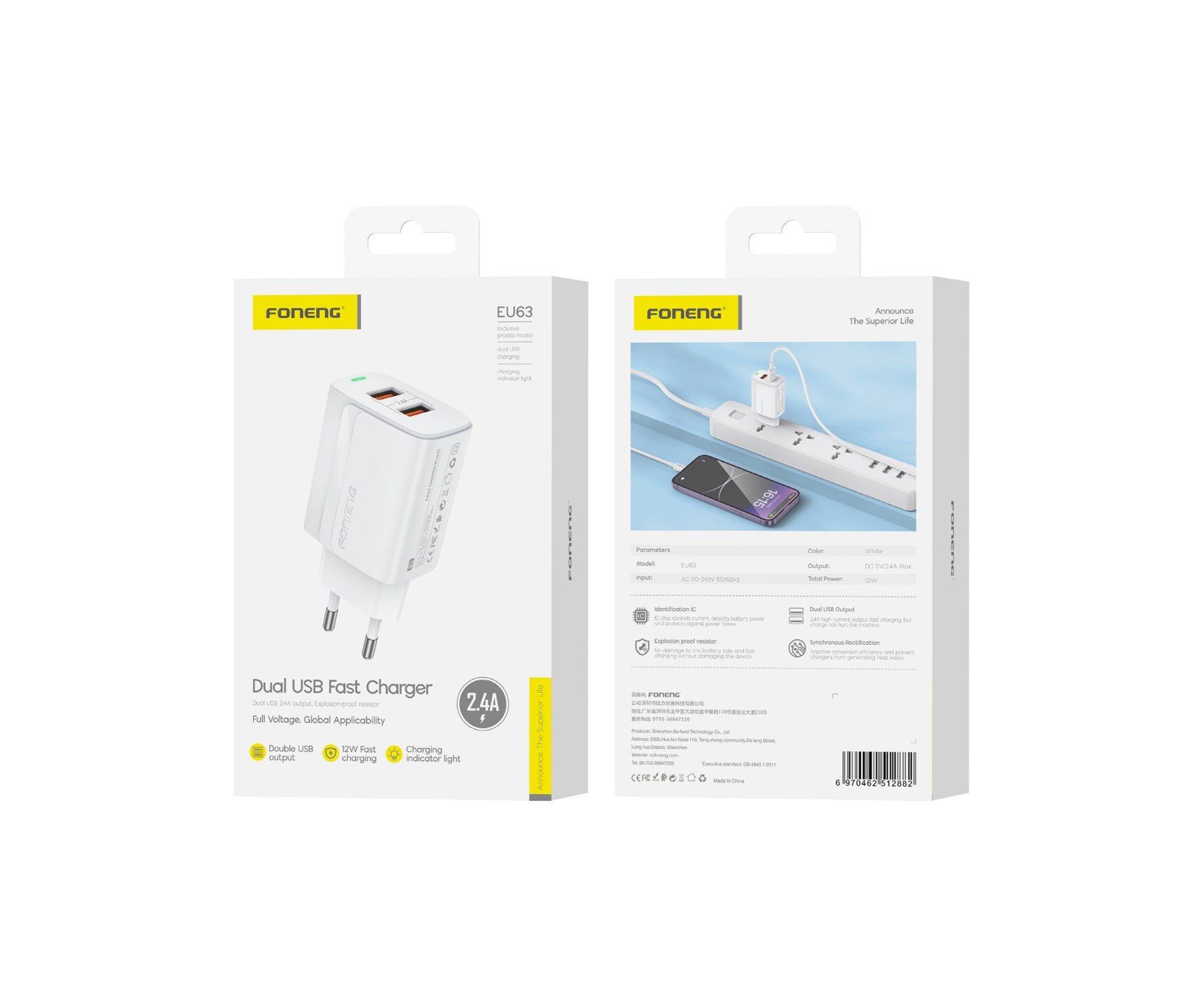 СЗУ Foneng EU63 2*USB 2.4A (White)