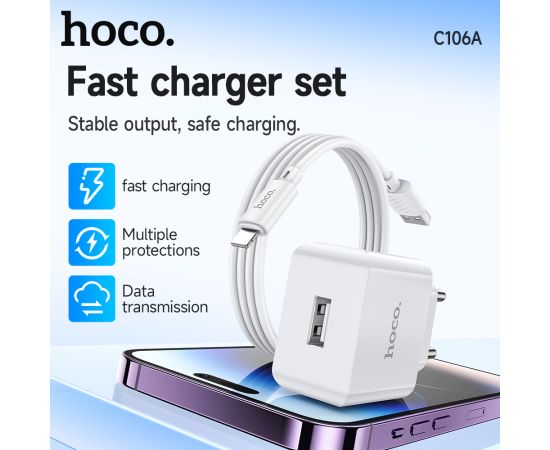 СЗУ HOCO C106A Leisure, 1USB + iP (EU) (белый)