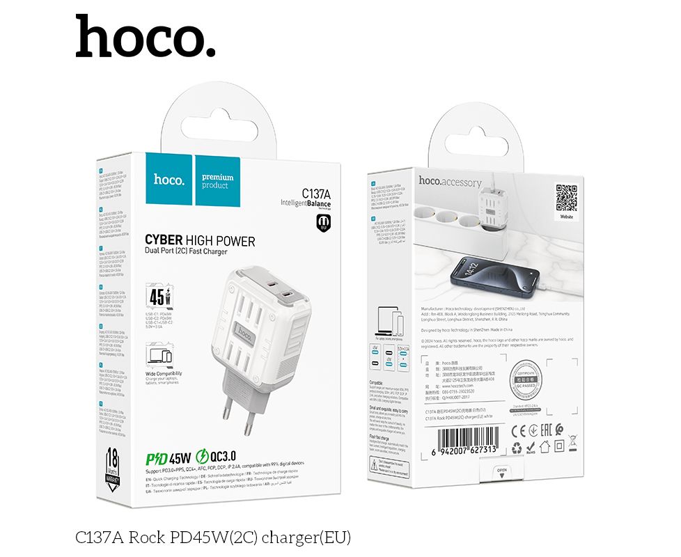 СЗУ HOCO C137A Rock PD45W(2C) charger(EU) (белый)