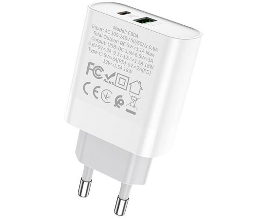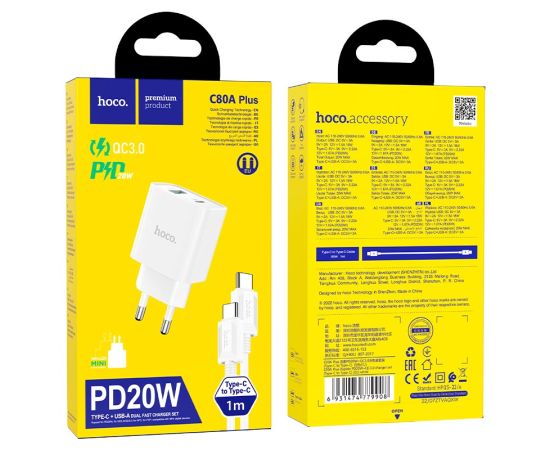 СЗУ HOCO C80A Plus Rapido PD20W+QC3.0 Type-C + Type-C (белый)
