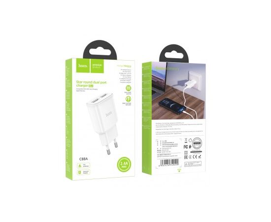 СЗУ HOCO C88A Star round, 2USB, 2.4A (белый)