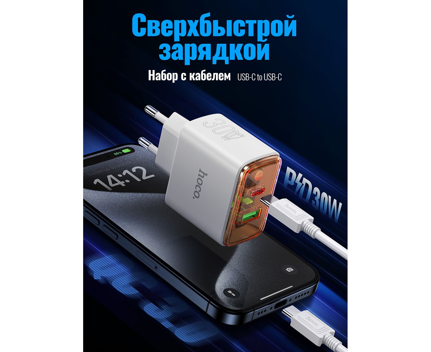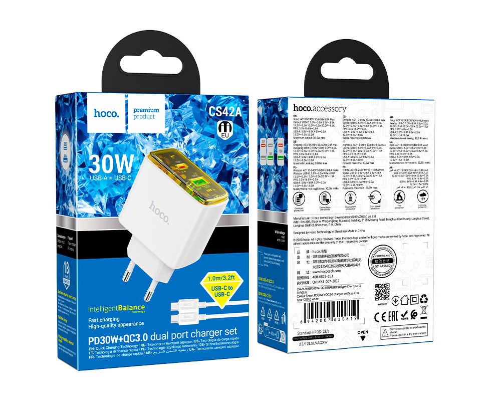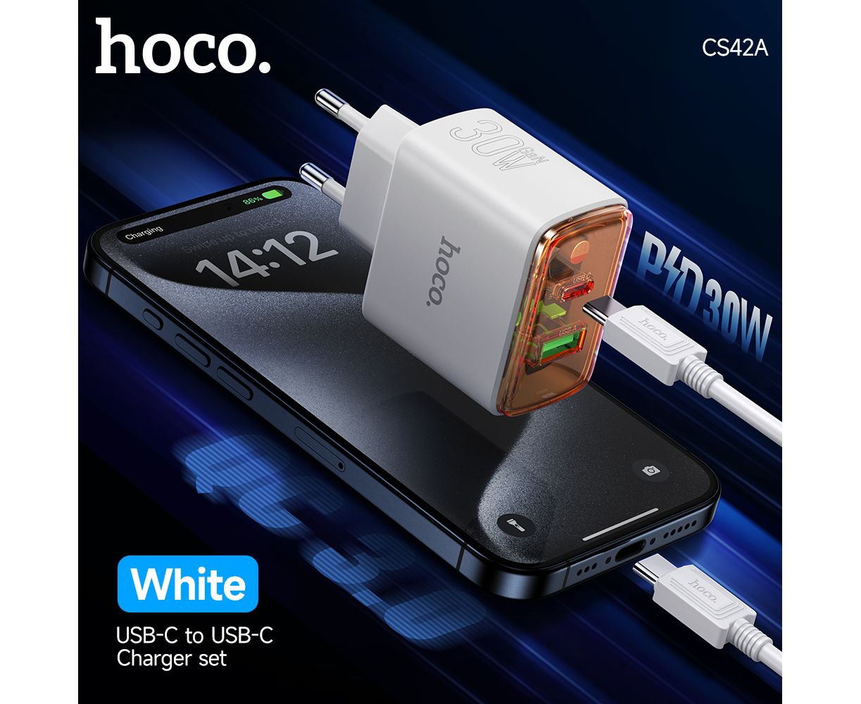 СЗУ HOCO CS42A Smart PD30W+QC3.0 charger set(Type-C + Type-C)(EU) (белый)