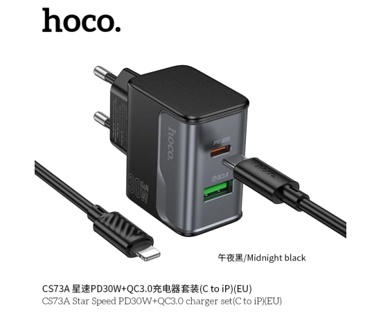 СЗУ HOCO CS73A Star Speed PD30W+QC3.0 (C to iP) (черный)