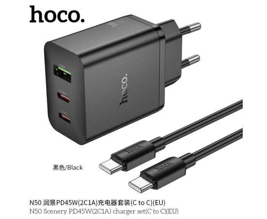СЗУ HOCO N50 Scenery PD45W(2C1A) cabel Type-C to Type-C (черный)