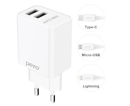СЗУ PERO TC02 2USB 2.1A c кабелем Micro USB в комплекте, белый