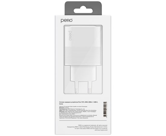 СЗУ PERO TC11 USB-A QC3.0 + USB-C PD, 45W белый