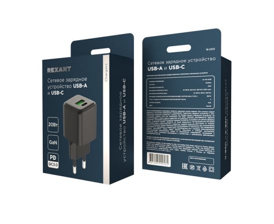 СЗУ REXANT 18-2202 USB-A и Type-C, 20Вт GaN