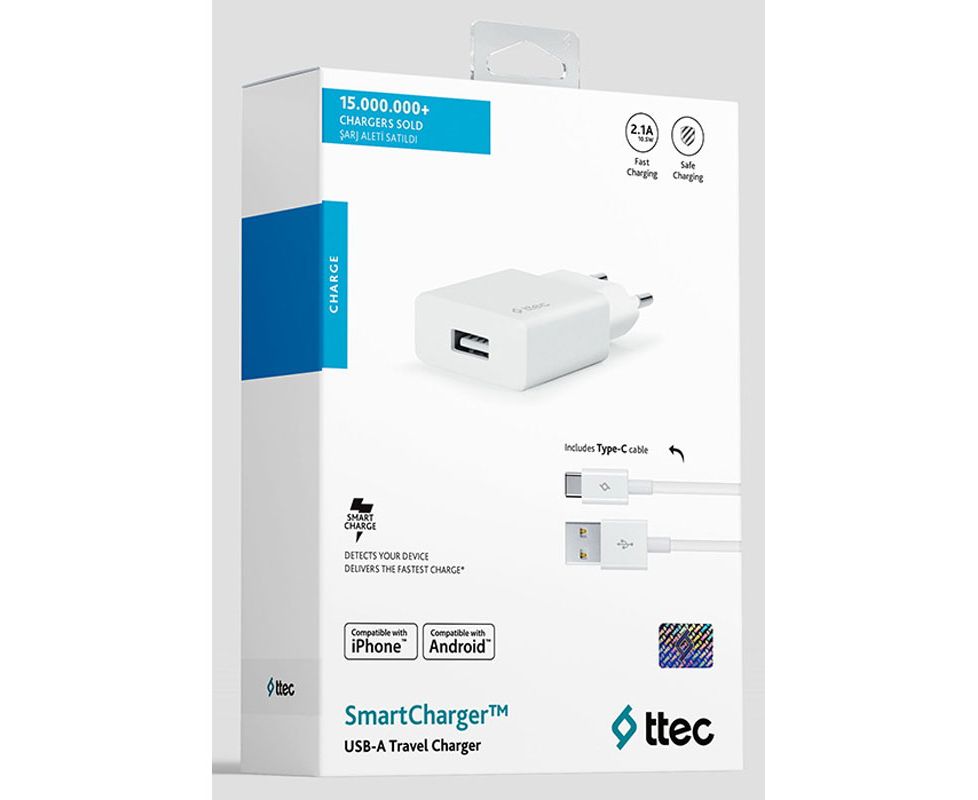 СЗУ TTEC 2SCS20CB SmartCharger Travel Charger 2.1A Type-C Cable White