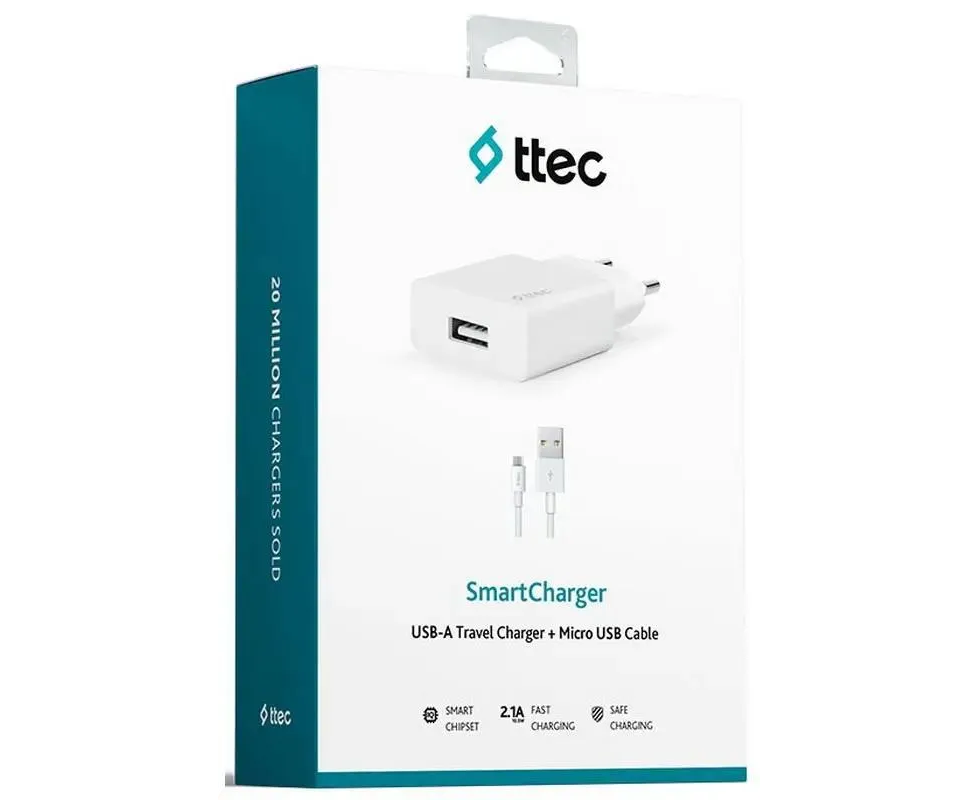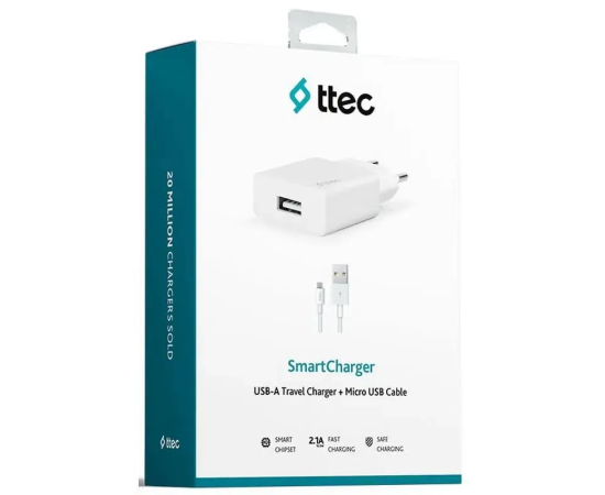 СЗУ TTEC 2SCS20MB SmartCharger Travel Charger 2.1A Micro USB Cable -White