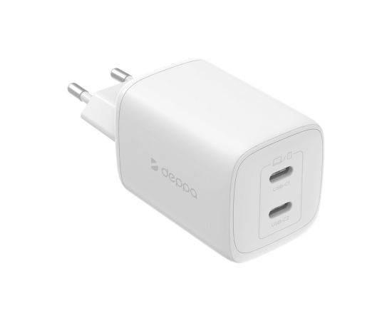 СЗУ 2xUSB-C, PD 3.0, QC 4.0, 65W, GaN, белый, Deppa