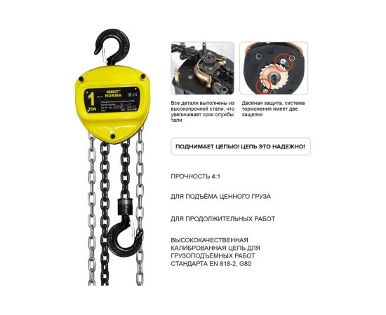 - Таль серии NORMA подходит и профессионалам и новичкам, поднимет и надёжно удержит груз.