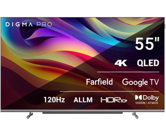 55" Телевизор Digma Pro QLED 55L черный QLED 3840x2160, 4K Ultra HD, 120 Гц, Wi-Fi, Smart TV, Google TV