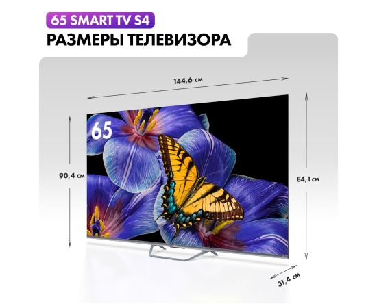 65" Телевизор Haier Smart TV S4 серый 3840x2160, 4K Ultra HD, 60 Гц, Wi-Fi, Smart TV, Android TV