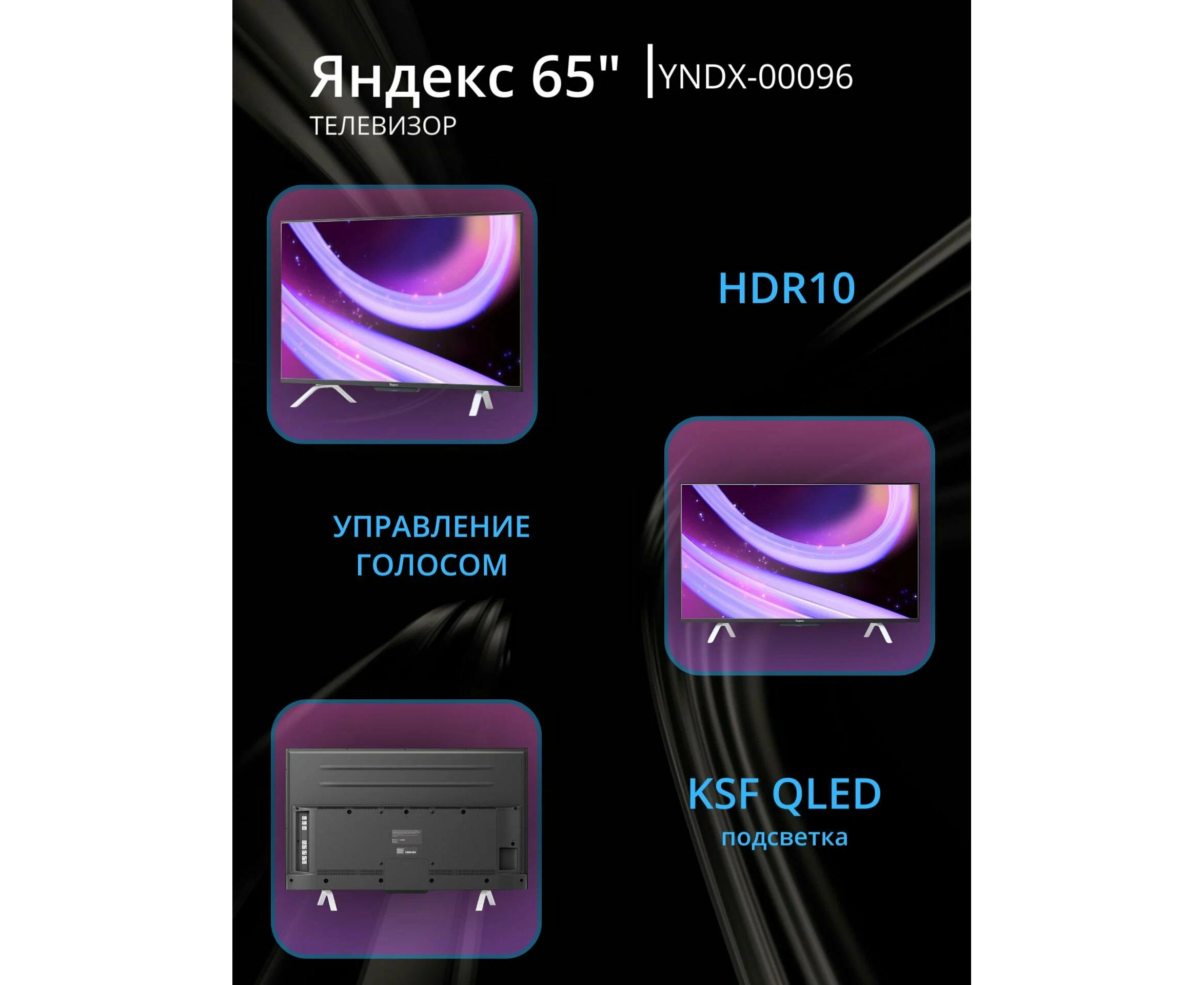 65" Телевизор YANDEX ТВ Станция с Алисой YNDX-00096 черный 3840x2160, 4K Ultra HD, 60 Гц, Wi-Fi, Smart TV, Яндекс ТВ