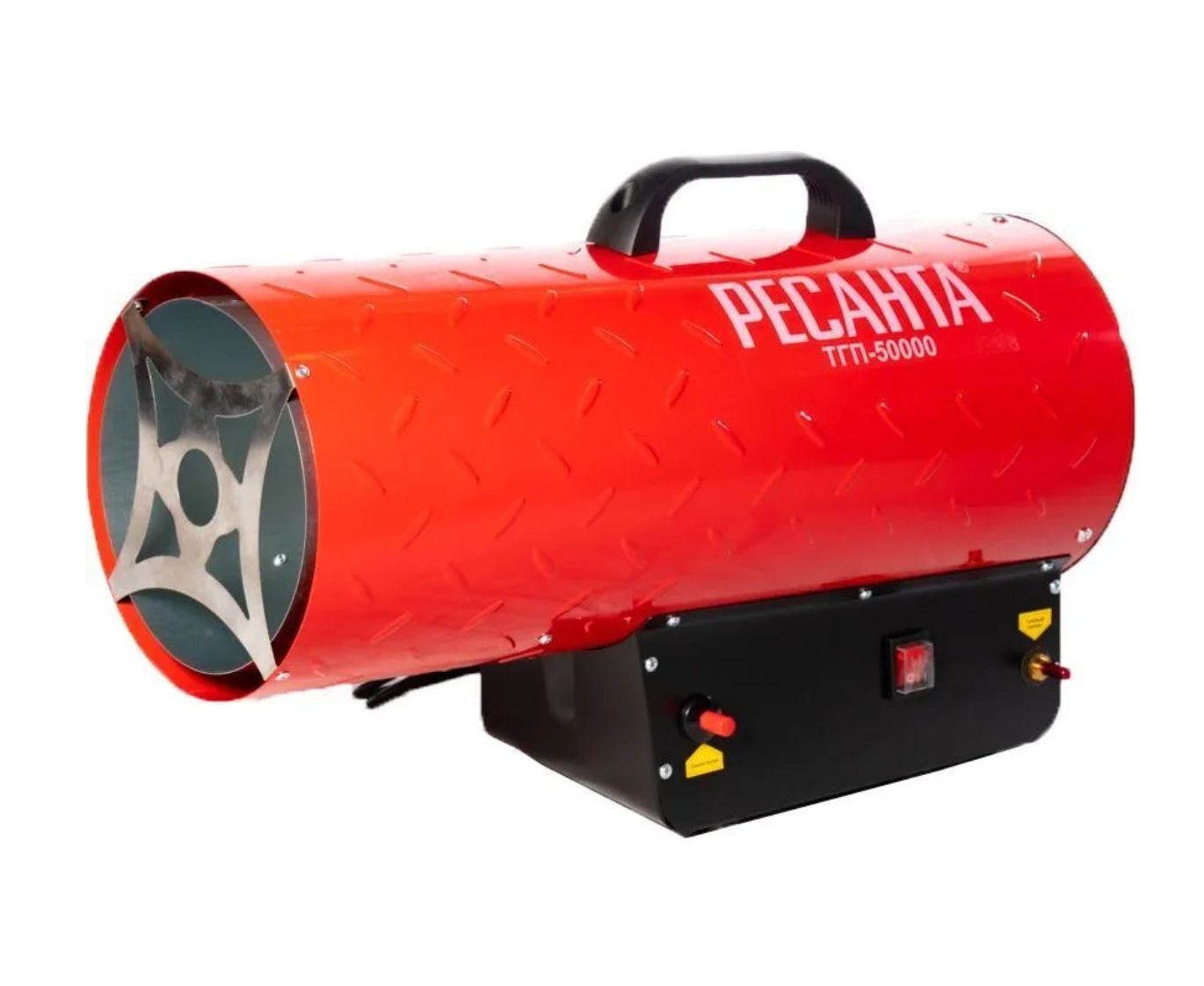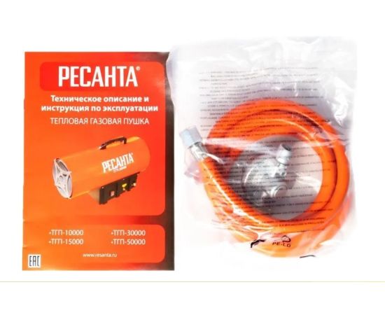 Газовая тепловая пушка РЕСАНТА ТГП-50000 – воздухонагреватель, работающий на сжиженном газовом топливе. Топливо необходимо для получения горячей атмосферы в камере сгорания, а электроэнергия, подводимая к устройству, необходима для питания вентилятора, нагнетающего воздух, и для функционирования автоматики. Газовые пушки прямого нагрева являются простой и надёжной конструкцией без дымохода, где горячий воздух из устройства поступают в помещение.