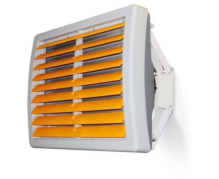 Водяной тепловентилятор Тепломаш КЭВ-32M3,5W2 233028 для отопления офисных, административных, складских, промышленных и других помещений. Монтаж - вертикальный или горизонтальный. Монтажный кронштейн с регулируемыми углами поворота и наклона тепловентилятора, и регулируемые жалюзи позволяют направить воздушную струю в рабочую область.