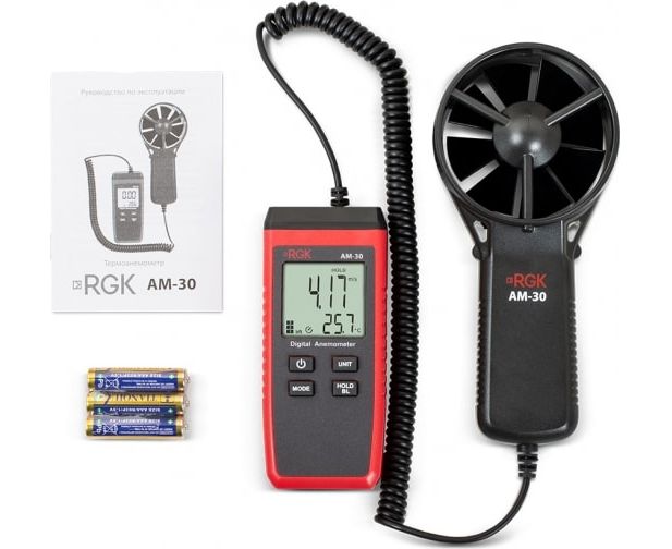 Термоанемометр RGK AM-30 с поверкой 779296 предназначен для измерения скорости и температуры воздушного потока.