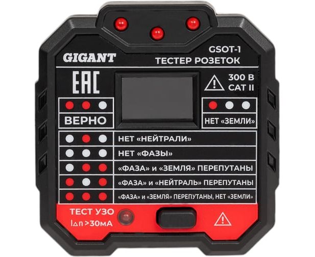 Тестер розеток и УЗО Gigant GSOT-1