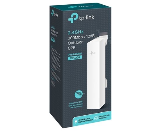 TP-LINK SMB CPE220, Wi-Fi Точка доступа внешняя, 2.4Ghz, 300Mbps High power, 802.11b/g/n, wirelss transmit power up to 30dBm, 2T2R, 12dBi directional antenna, 2 10/100Mbps LAN ports, IPX5 waterproof certification, Passive PoE