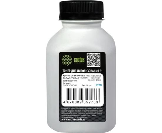 Тонер Cactus CS-TKYCUC-50 голубой флакон 50гр для принтера Kyocera Color Universal TK-5хх/5270/8xx/8115/8305/8315/8505/8600