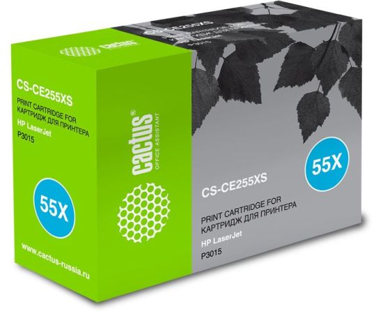 Тонер картридж CACTUS CS-CE255X/XS для принтеров HP LaserJet P3015, черный, 12500 стр.