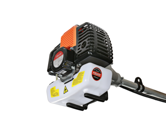 Двигатель триммера имеет хонинговую поршневую группу с покрытием из твердого хрома. Он хорошо сбалансирован и характеризуется стабильной работой во всех положениях без потери мощности и небольшим расходом топлива. Низкий уровень шума позволяет использовать инструмент как в утренние, так и в вечерние часы, не мешая окружающим людям. Оптимизированный редуктор обладает повышенной стойкостью к механическому воздействию – он без труда справляется с любой растительностью. Топливный бак имеет полупрозрачные стенки из пластика, что упрощает контроль за уровнем горючего.