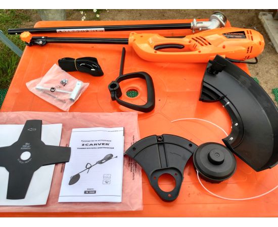 Особенности: Разъемная штанга; Ударопрочный корпус; Наплечный ремень в комплекте; Система плавного пуска; Защита от случайного включения; Полуавтоматическая подача лески; Длина лески в кассете (max): 5м.