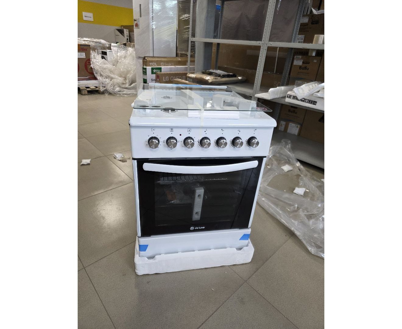 УЦ Плита De Luxe 606040.00гэ-001(кр) ЧР белый (плохая упаковка, скол эмали на углах, вмятина на задней части корпуса)