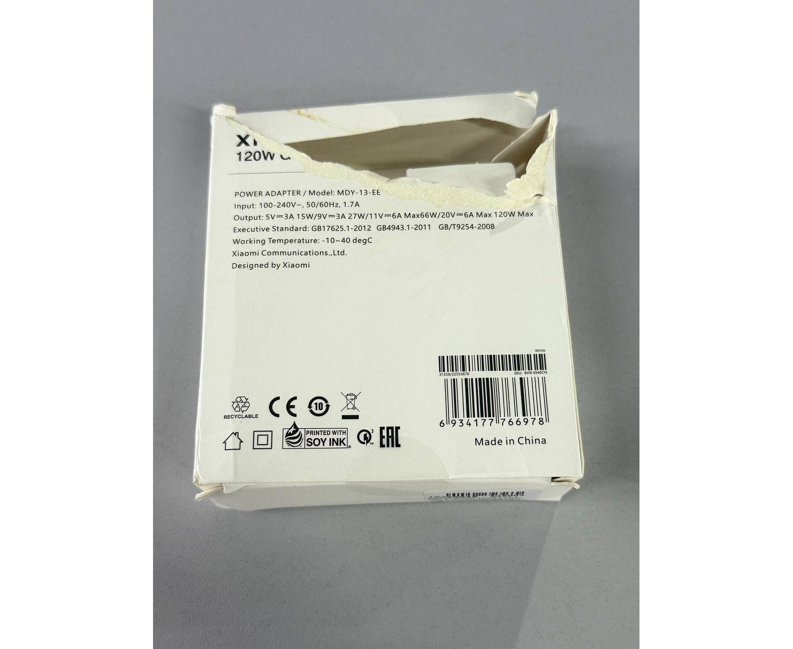 УЦ СЗУ Xiaomi 120W GaN 1 USB-A Charger set with cabel Type-C EU (плохая упаковка)