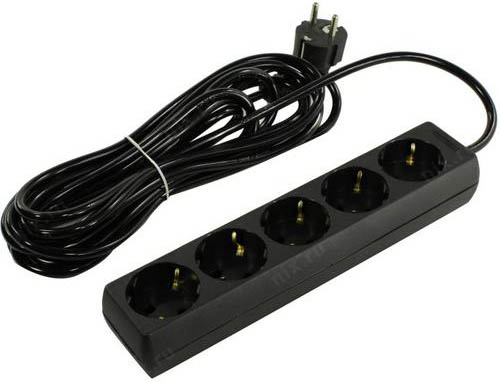 сетевой удлинитель, 5 розеток, 1.8 м, чёрный