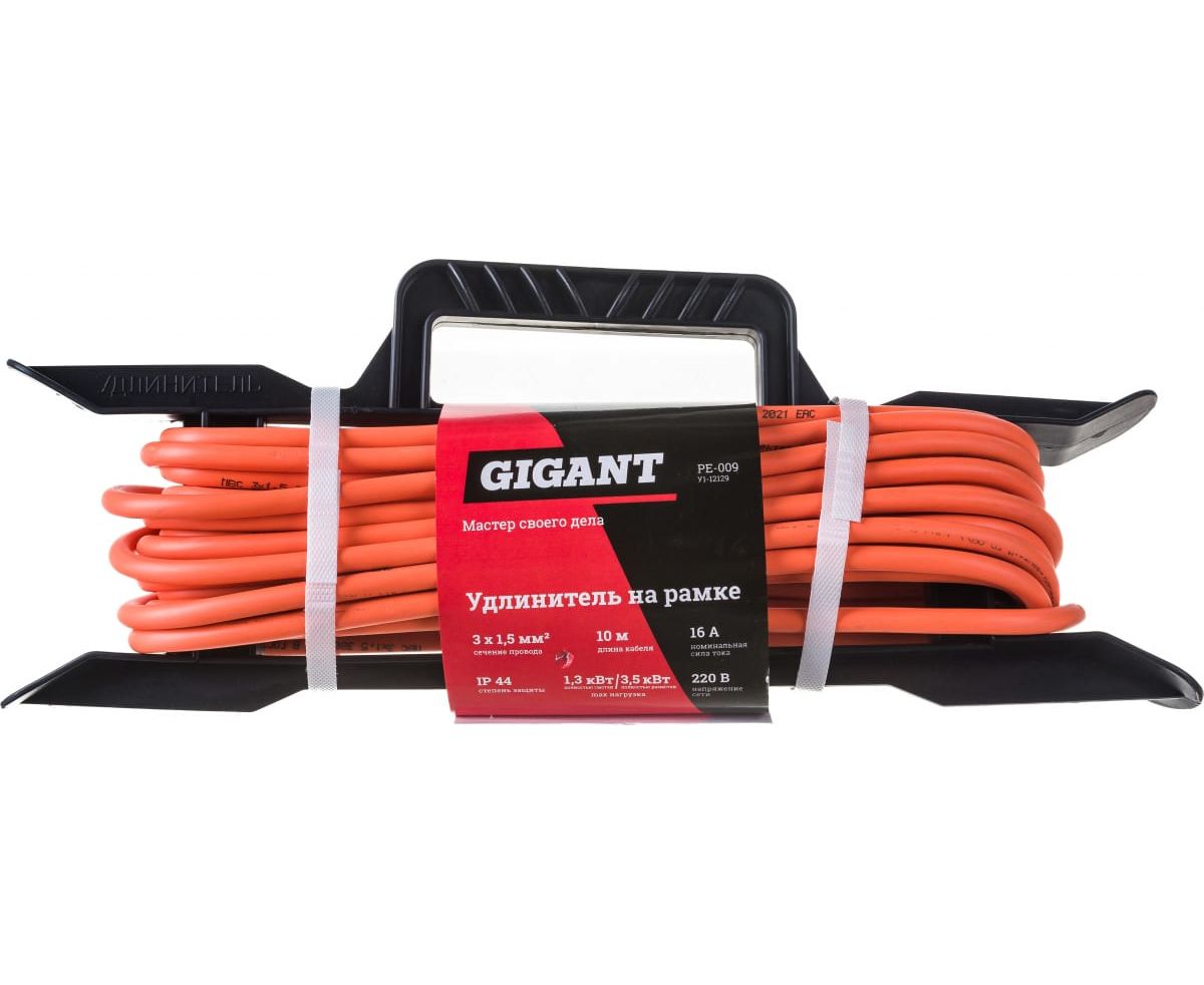 Удлинитель Gigant PE-009 на рамке с/з ПВС 3х1,5 16A 10м IP 44