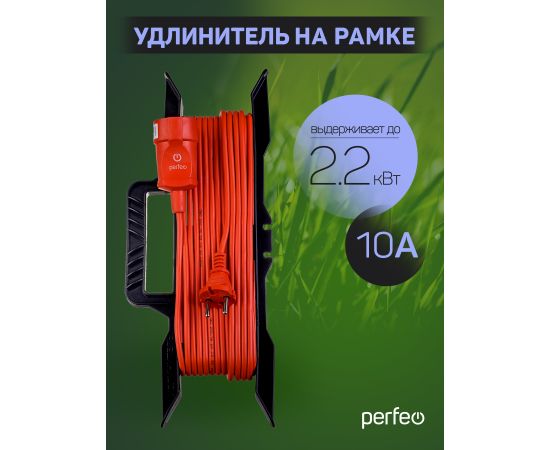 Удлинитель на рамке без заземления Perfeo "RU POWER" 50м 1гн 10А ПВС 2х1,0 (УХ10-101) оранжевый.