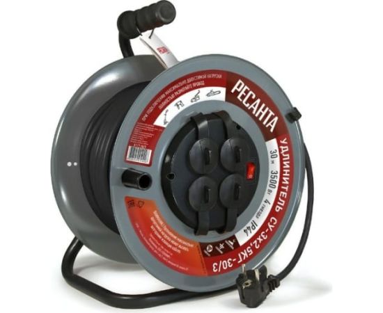 Удлинитель силовой Ресанта СУ-3х2,5КГ-30/3 на металлической катушке, с выкл., 4 розетки, IP44 61/118/9