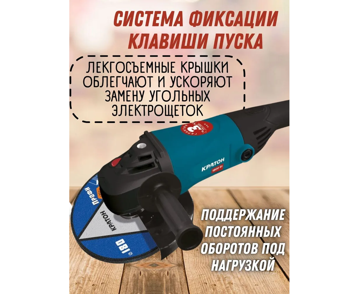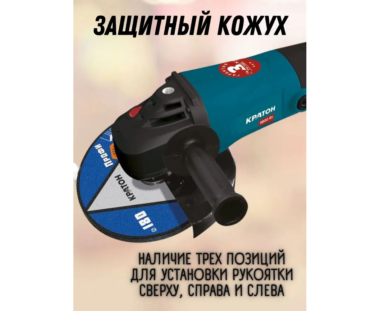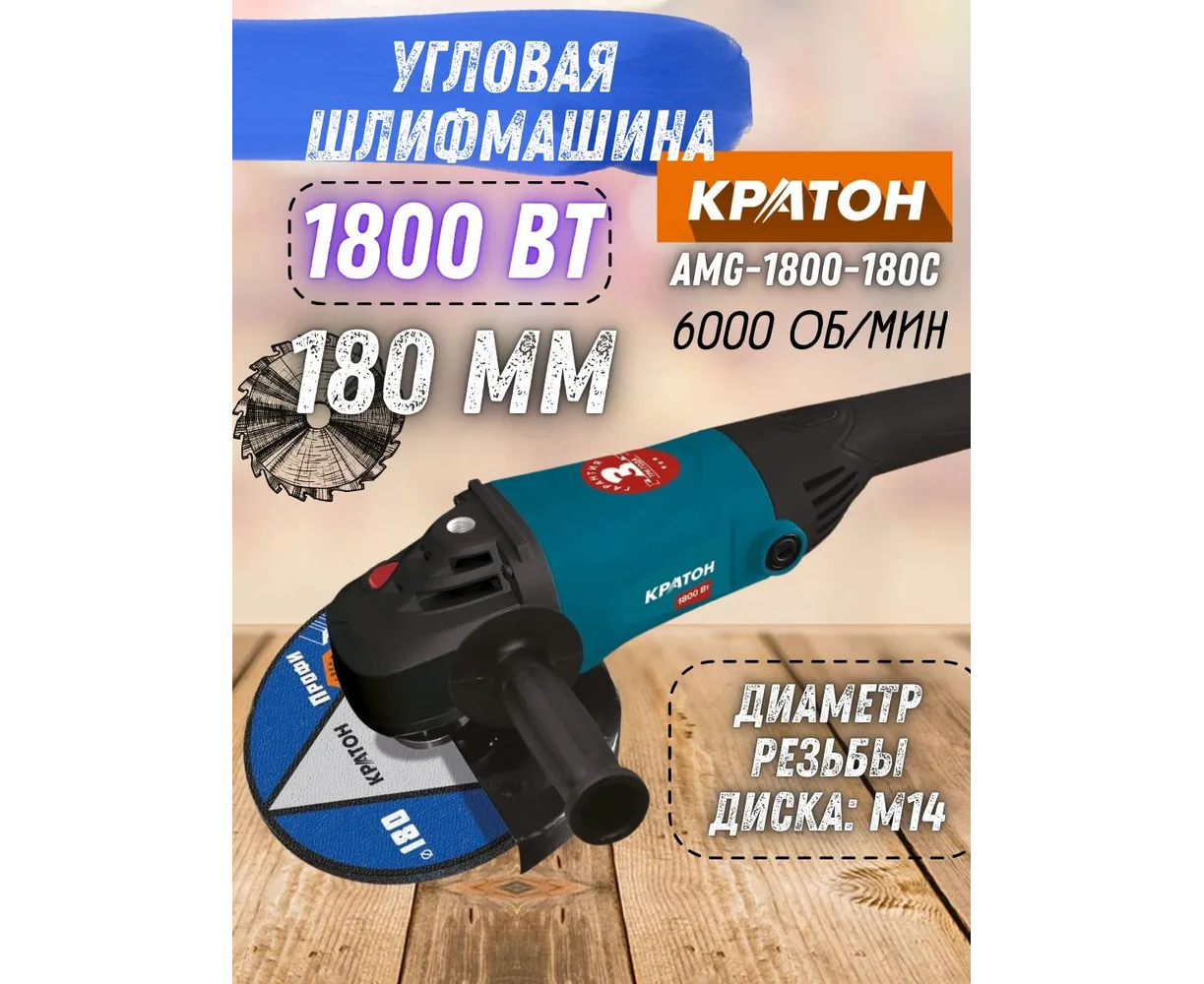 Углошлифовальная машина Кратон AMG-1800-180C 1800Вт 6000об/мин рез.шпин. M14 d=180мм (30501046)