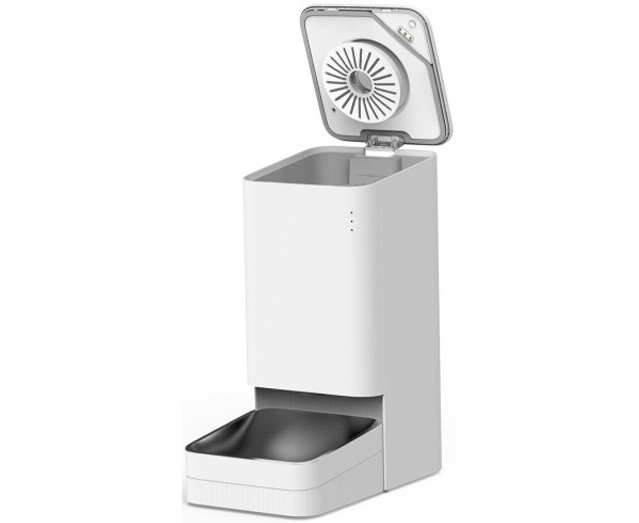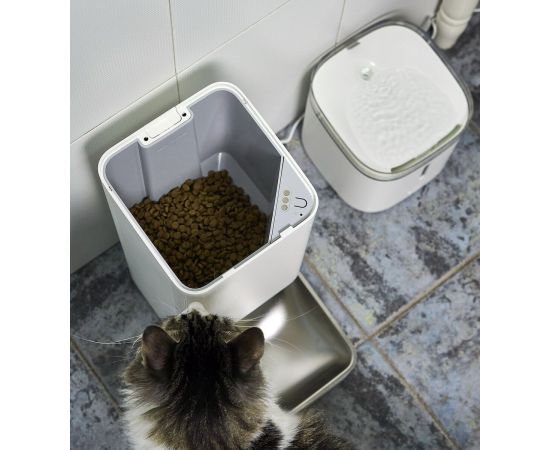 Автоматическая кормушка с большим хранилищем сухого корма на 1,8 кг подходит как для кошек, так и для собак. Для небольшого животного такого количества корма хватит примерно на 15-20 дней.