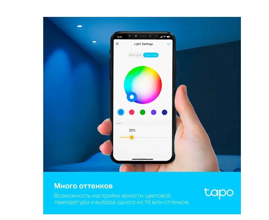 6 миллионов оттенков — выберите один из множества оттенков и установите нужную яркость, чтобы создать подходящую атмосферу. Регулировка цветовой температуры — от 2200 до 6500 К. Высокая яркость и диммируемость — яркости 350 лм будет достаточно для акцентирования внимания на любимых предметах.