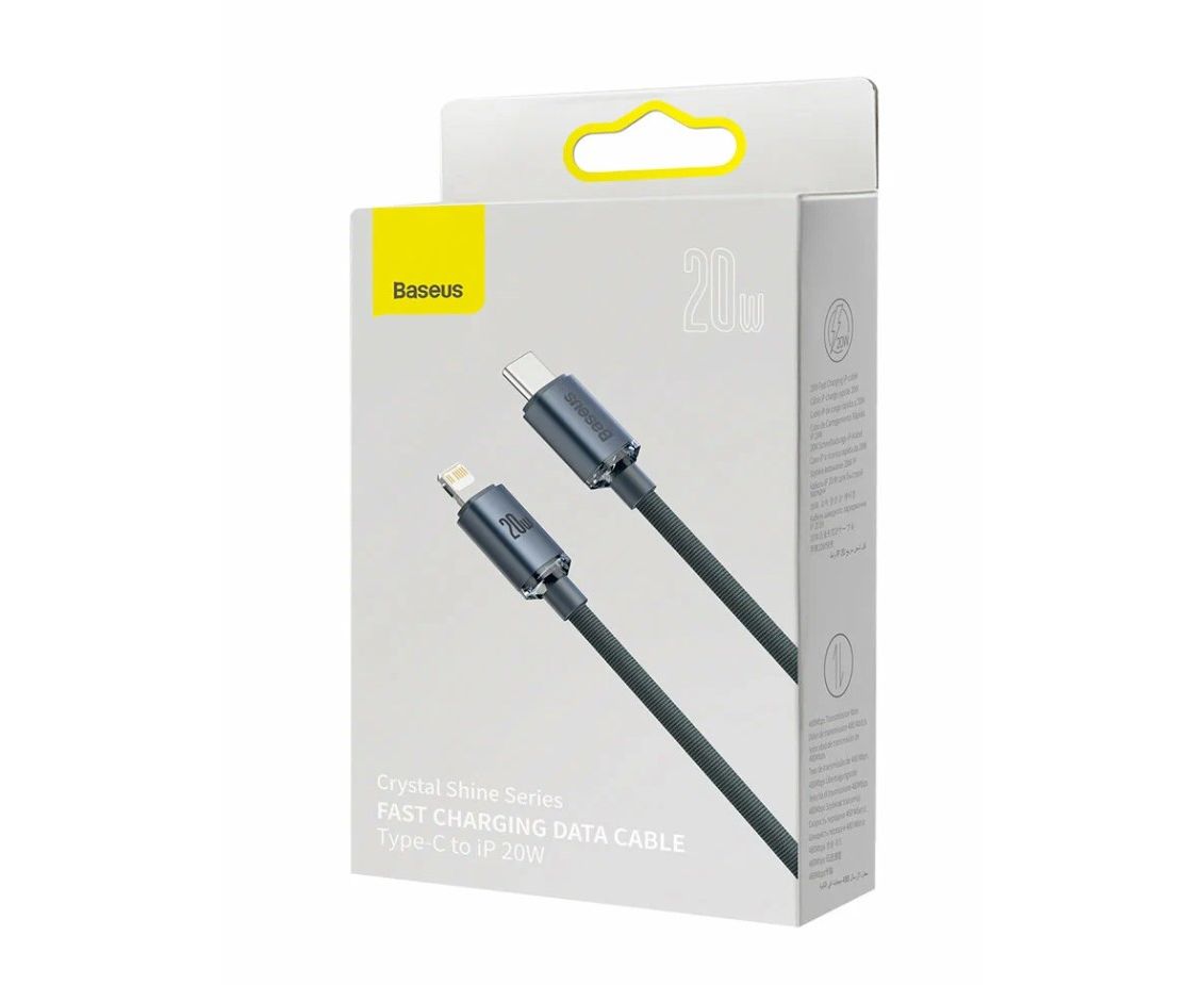 USB-кабель Baseus CAJY000301, 20W. Type-C/Apple-8pin, ткань, 2.0 м, круглый, серый, фирменная упаковка