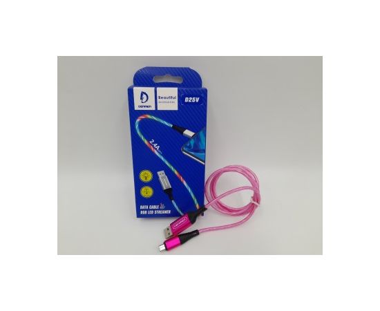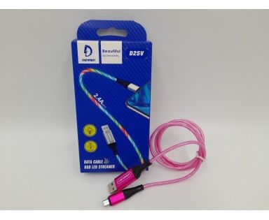 USB-кабель Denmen D25V, micro USB, силикон, 1.0 м, круглый, с подсветкой, розовый, фирменная упаковка